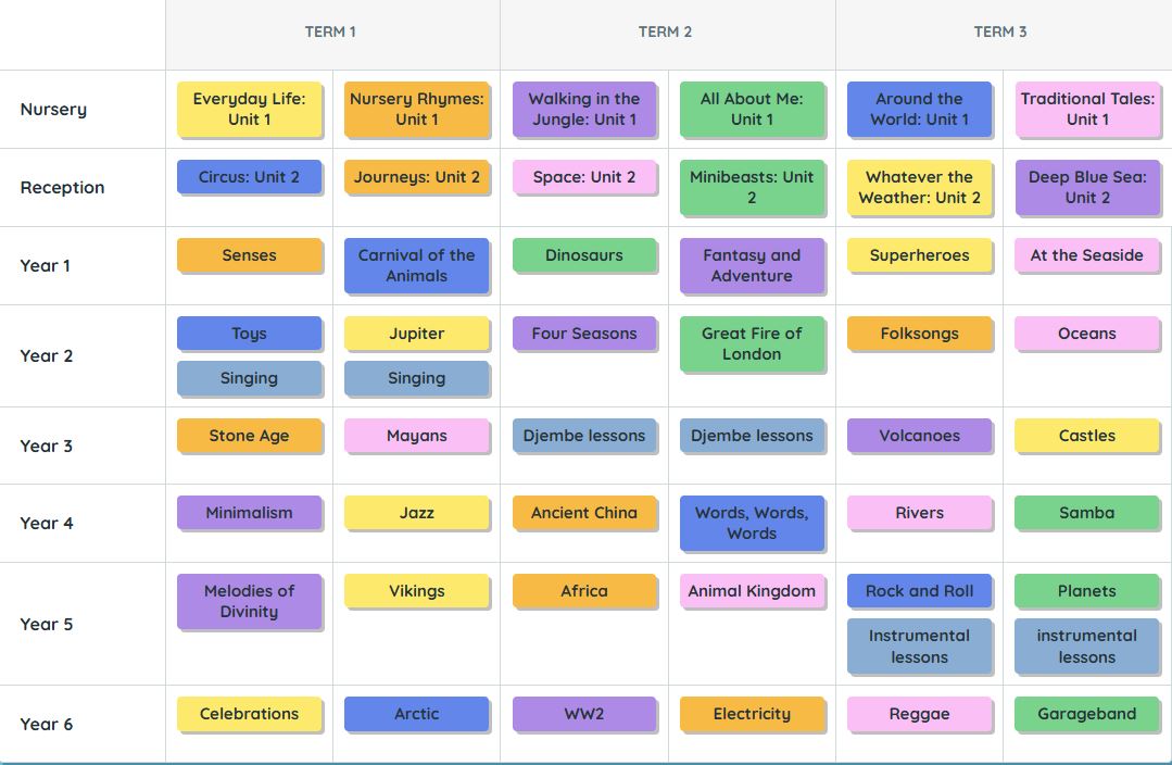 historical context and how this affects the children’s own use of materials and development of skills. The curriculum is designed to enable children